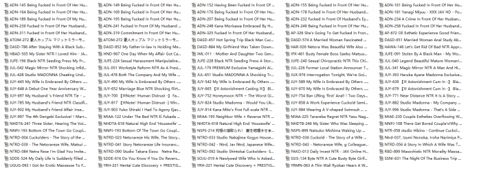 本帖最后由 lygario 于 2023-3-26 07:26 编辑 之前看过一位网友发的收藏,当然,每个人偏好不同,无所谓好坏,今天被自己收藏的日本有码ntr也发一下 ,选自两三千部电影。